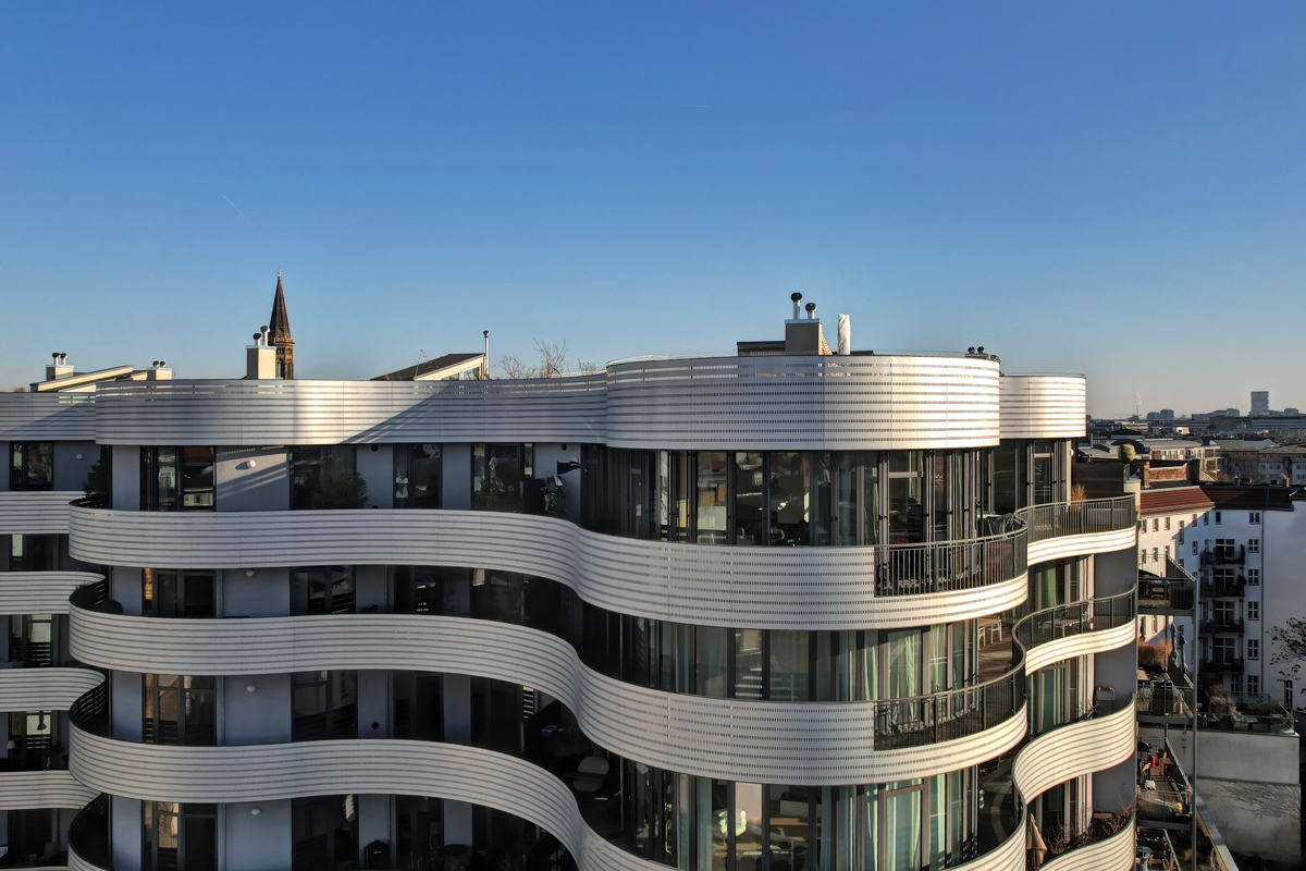 This exceptional penthouse is located in the prestigious Fehrbelliner Höfe residential complex at Fehrbelliner Straße 47E in Berlin-Mitte. Situated between the vibrant neighborhoods of Kollwitzkiez, Zionskirchplatz, and Torstraße, the residence offers a rare combination of central city living, privacy, and spectacular views over Berlin. With expansive terraces, open living spaces, and premium amenities, the penthouse creates a unique urban retreat above the city’s rooftops, combining modern architecture with the historic charm of one of Berlin’s most sought-after districts.